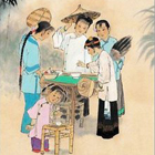 舊時習俗,在七夕前幾天,先在小木板上敷一層土,播下粟米的種子,讓它生出綠油油的嫩苗,再擺一些小茅屋、花木在上面,做成田舍人家小村落的模樣,稱為“殼板”,或將綠豆、小豆、小麥等浸于磁碗中,等它長出敷寸的芽,再以紅、藍絲繩扎成一束